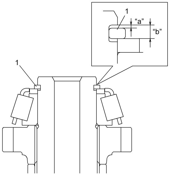 8) Select new circlip (1) that will make thrust clearance "a" of bearing 0.15 mm (0.0059 in) or less and install it.