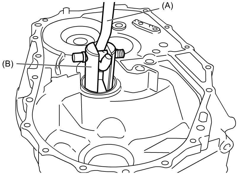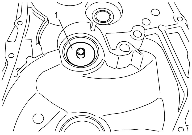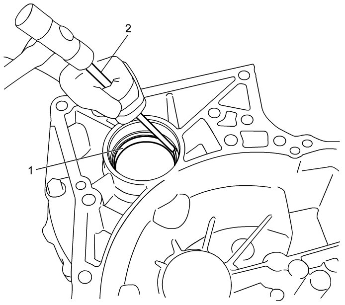 4) Break oil channel (1) with a flat end rod or the like and remove it in order to install special tool to countershaft right bearing outer race.