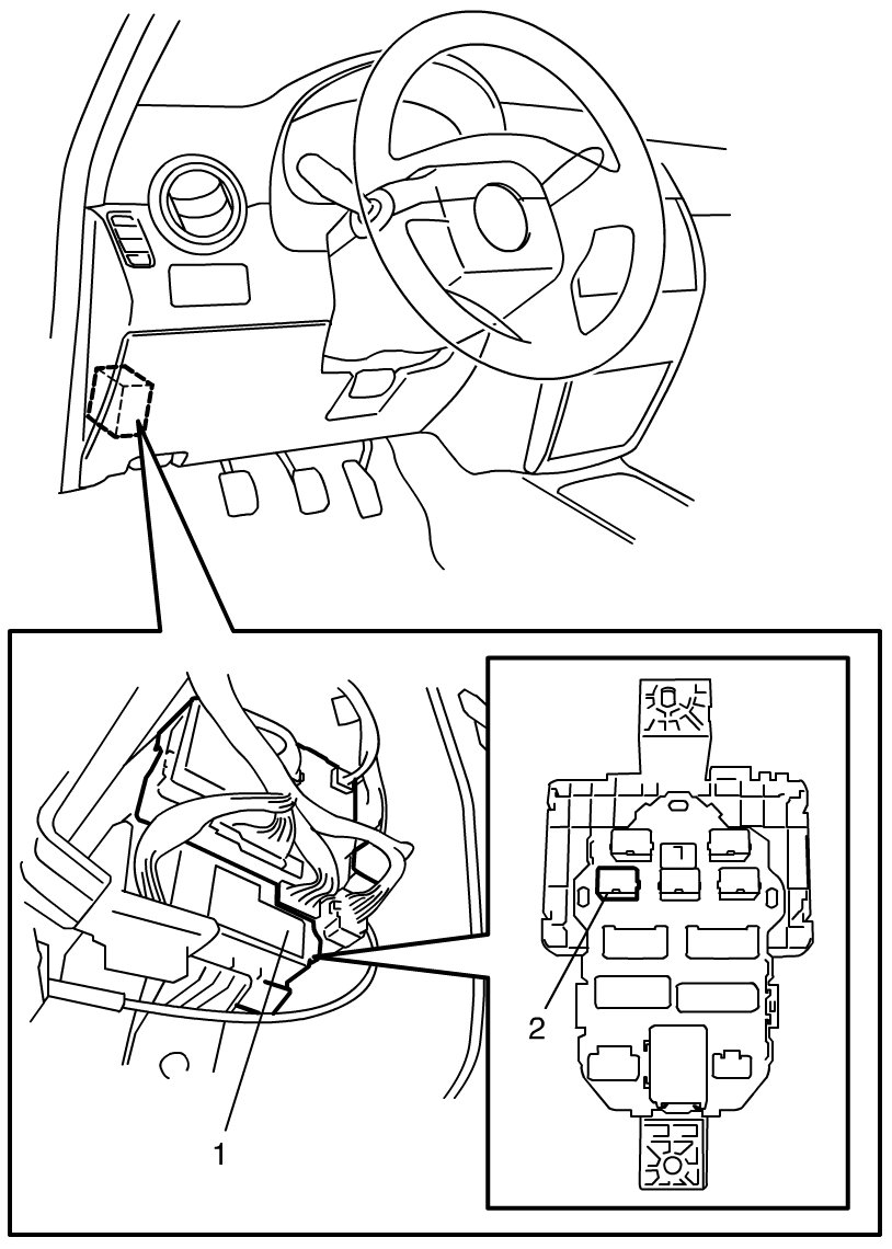 3) Remove rear wiper relay (2) from junction block.