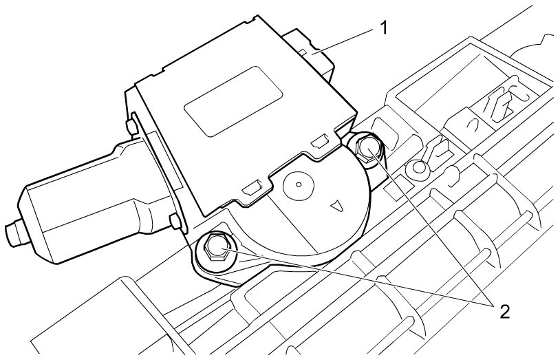 1) Remove sun roof motor (1) by removing sun roof motor bolts (2).