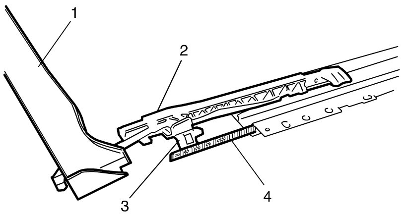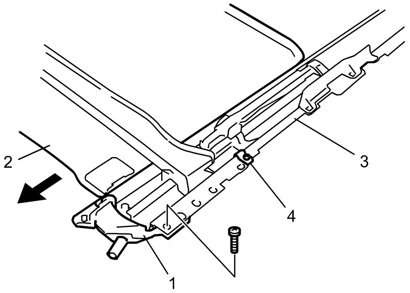 8) Pull out drip channel (1), panel brackets (2), shoes (3) and drive cables (4) all together from guide rails.