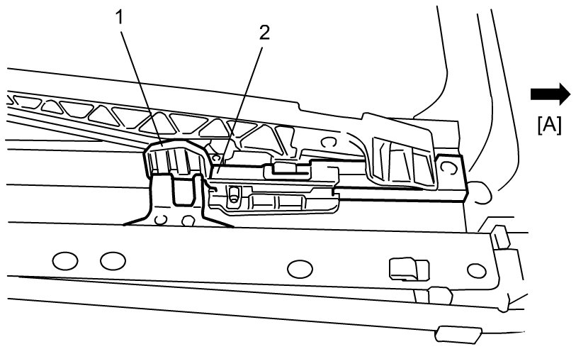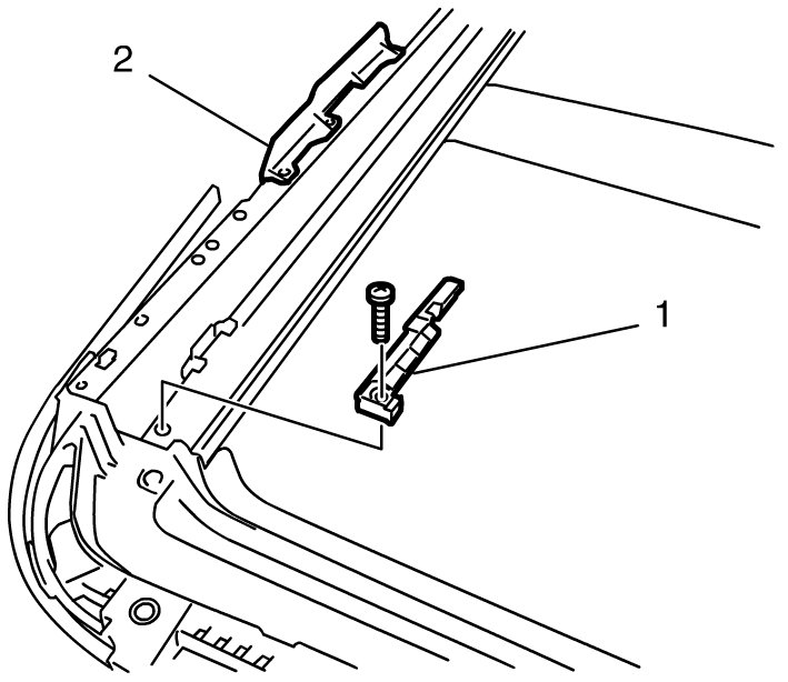 - Slide shoes (1) to contact guide blocks (2) for positioning the sun roof to tilt up position and install sun roof motor.