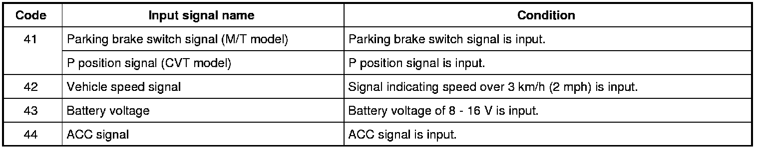 Items that can be monitored/diagnosed in the diagnosis mode are shown in the following tables. Buzzer beep patterns representing individual input signal/error codes are also shown here.