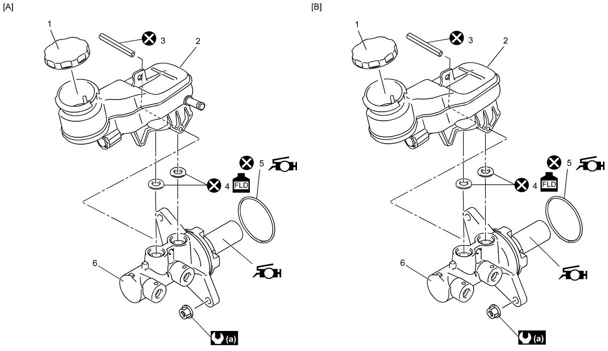 The master cylinder and brake booster will lose their original performance if they are disassembled and reassembled.