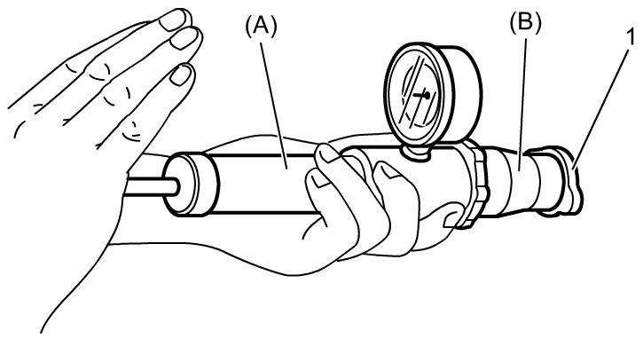 a) Attach special tool to radiator cap (1), and then apply specified pressure.