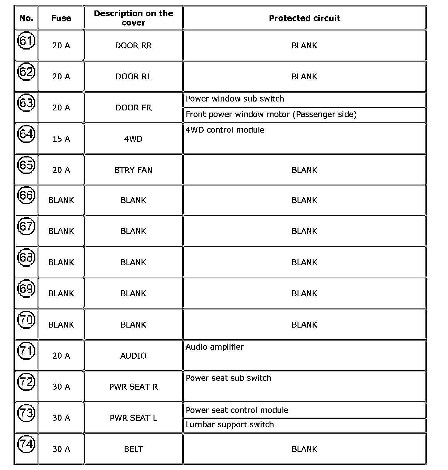 Individual Circuit Fuse Box No. 2 (In J/B)