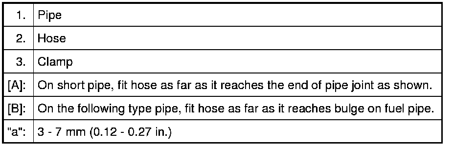 Be sure fuel hose end makes contact with bulge on fuel pipe or pipe joint end when inserting fuel hose to pipe.