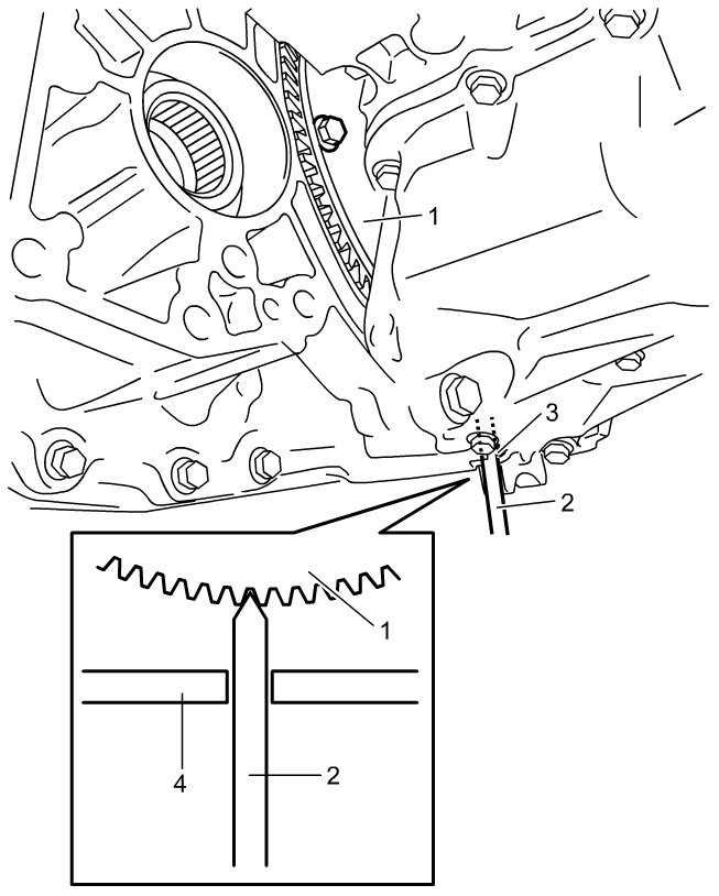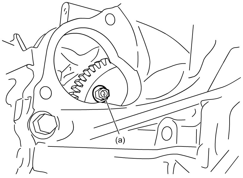 c) Lock drive plate (1), engage a flat-bladed screwdriver or the like with gear of drive plate as shown in figure.