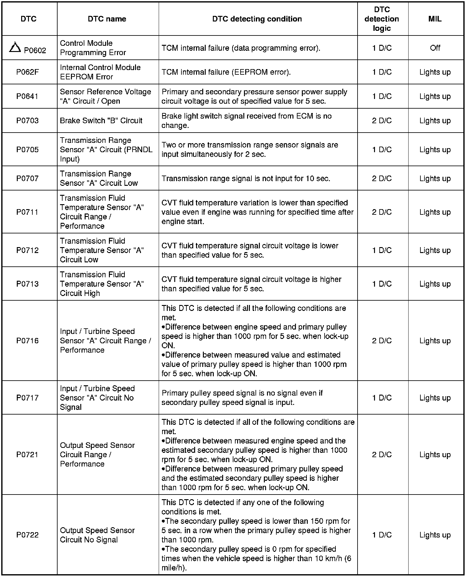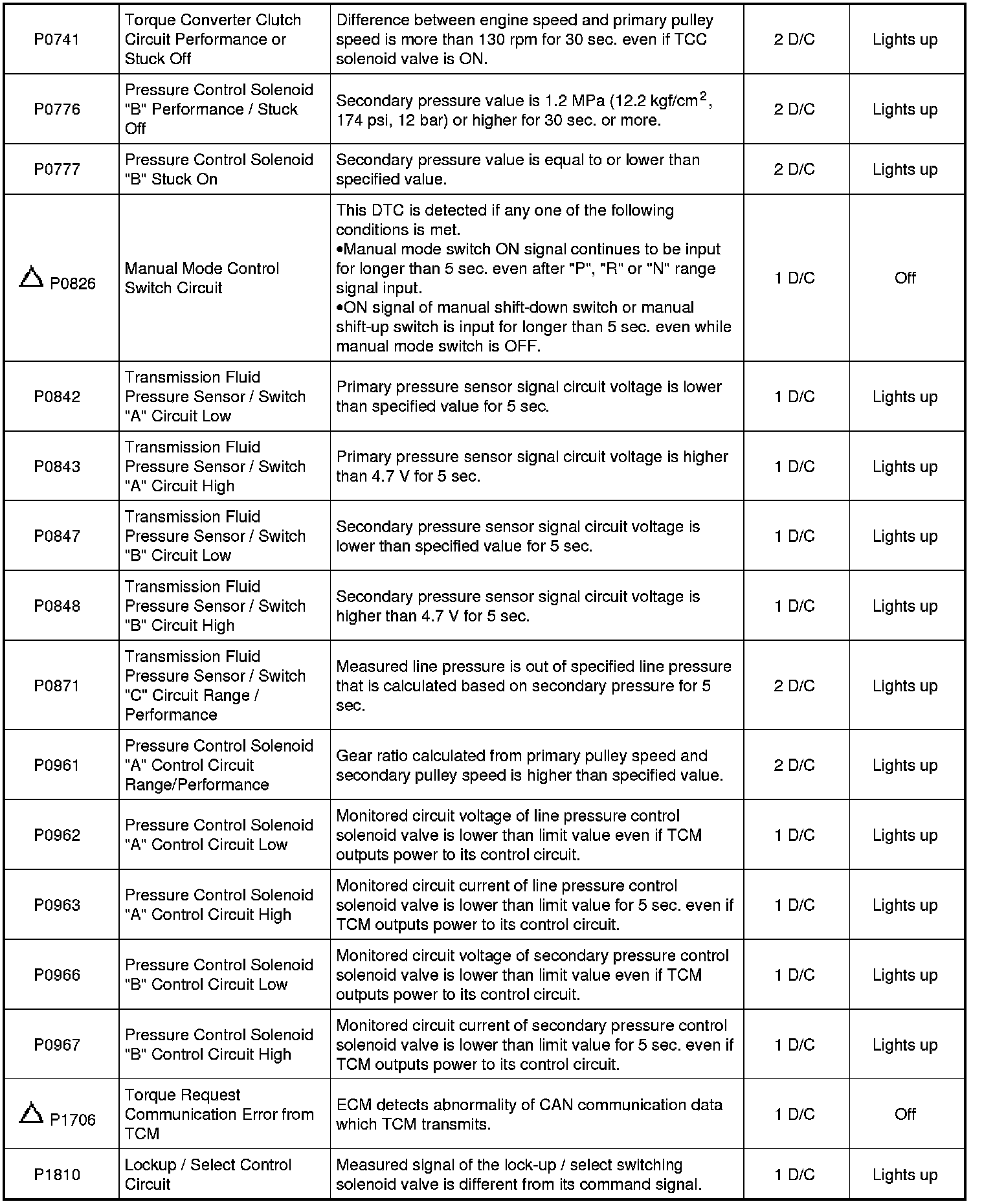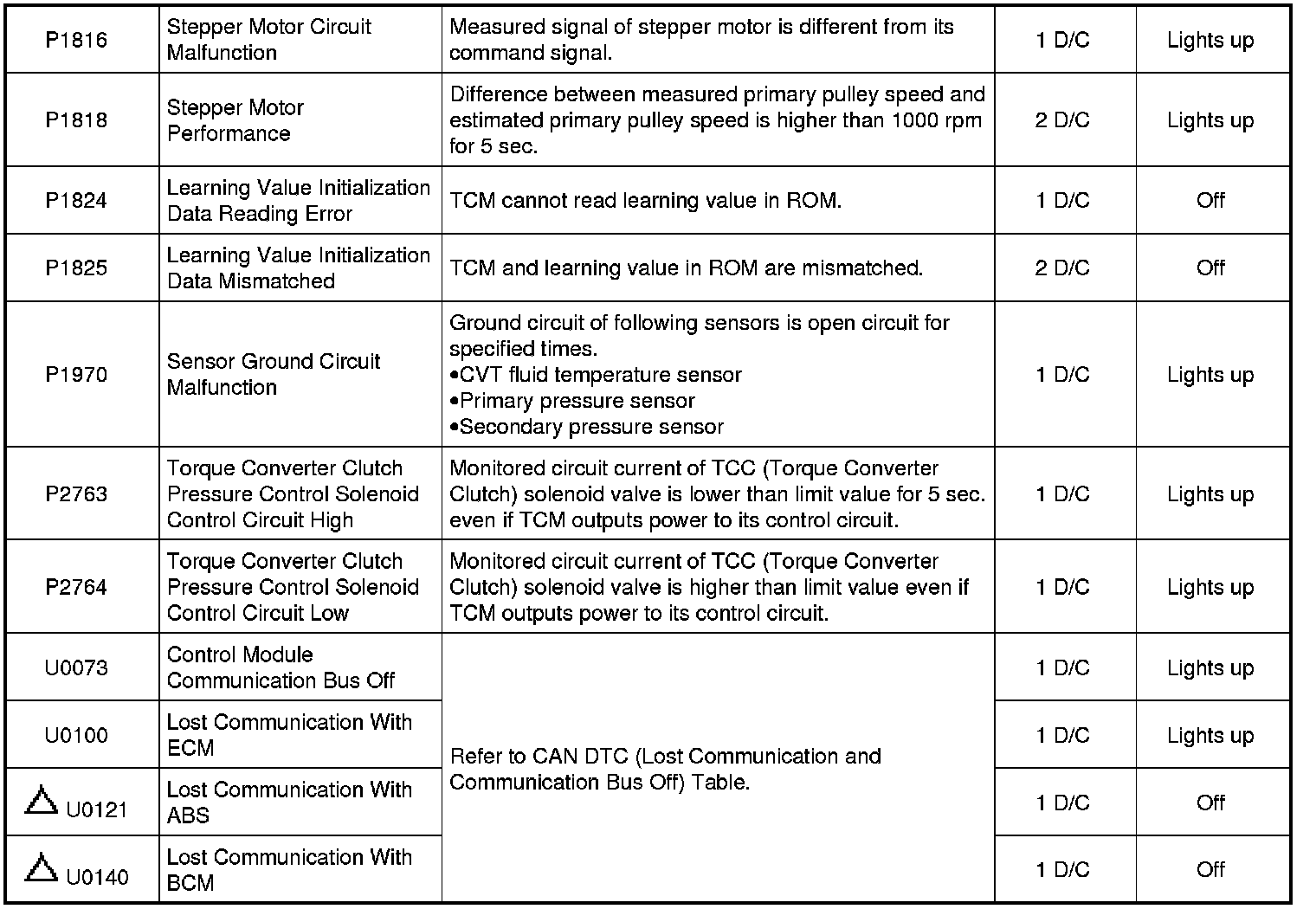 With the CAN communication OBD-II generic scan tool, DTC No. with delta () mark in the following table cannot be read.
