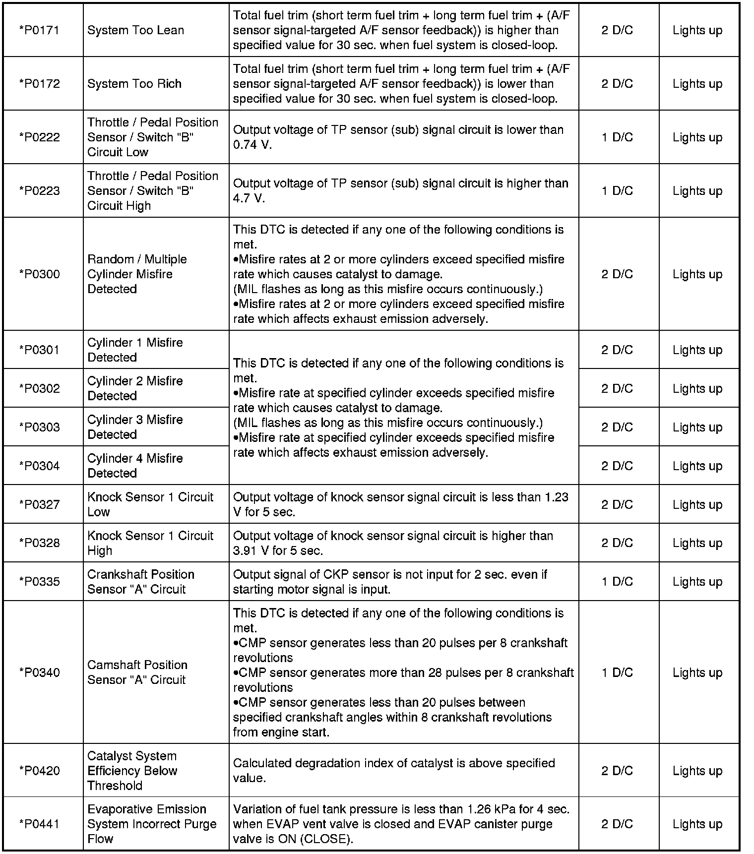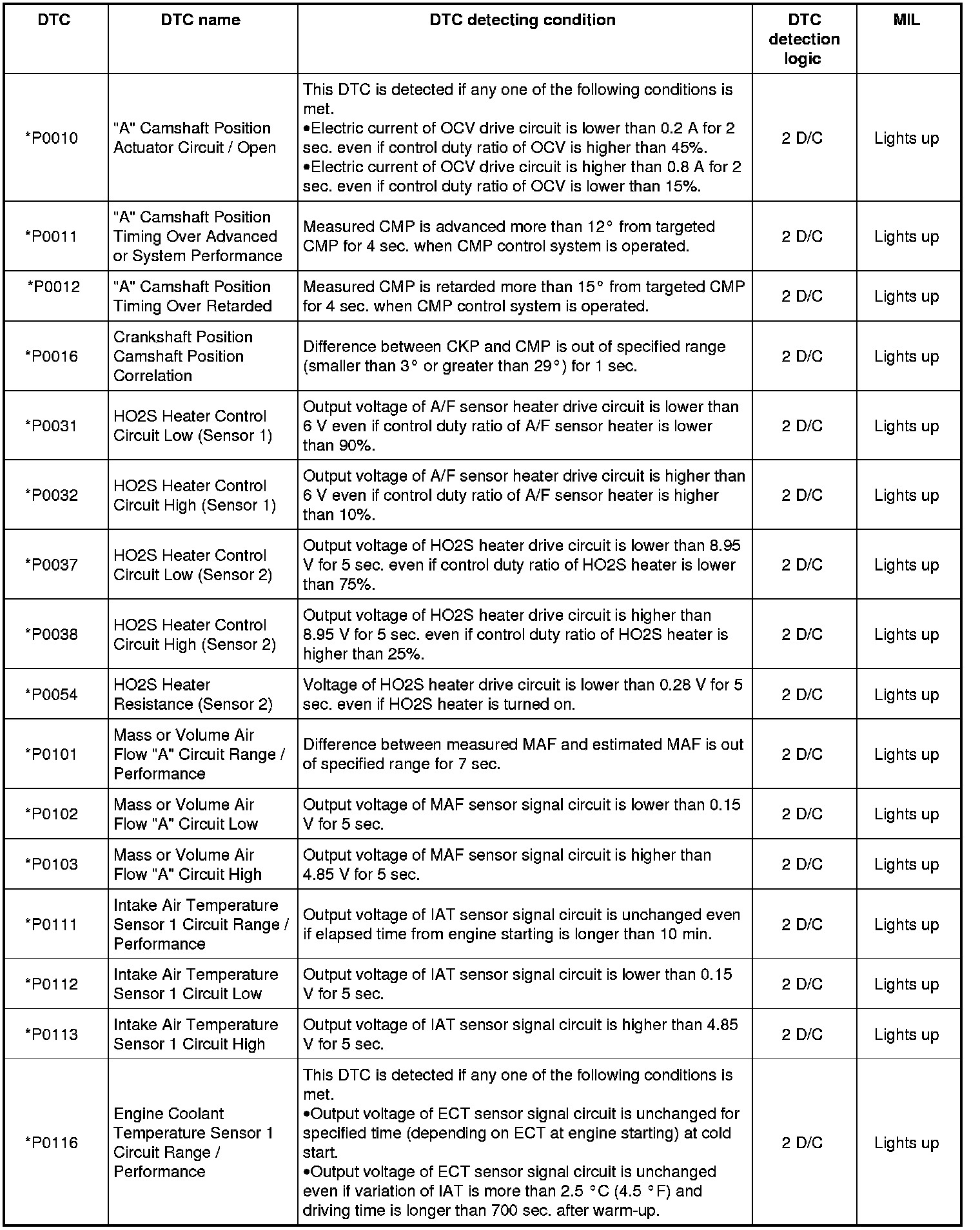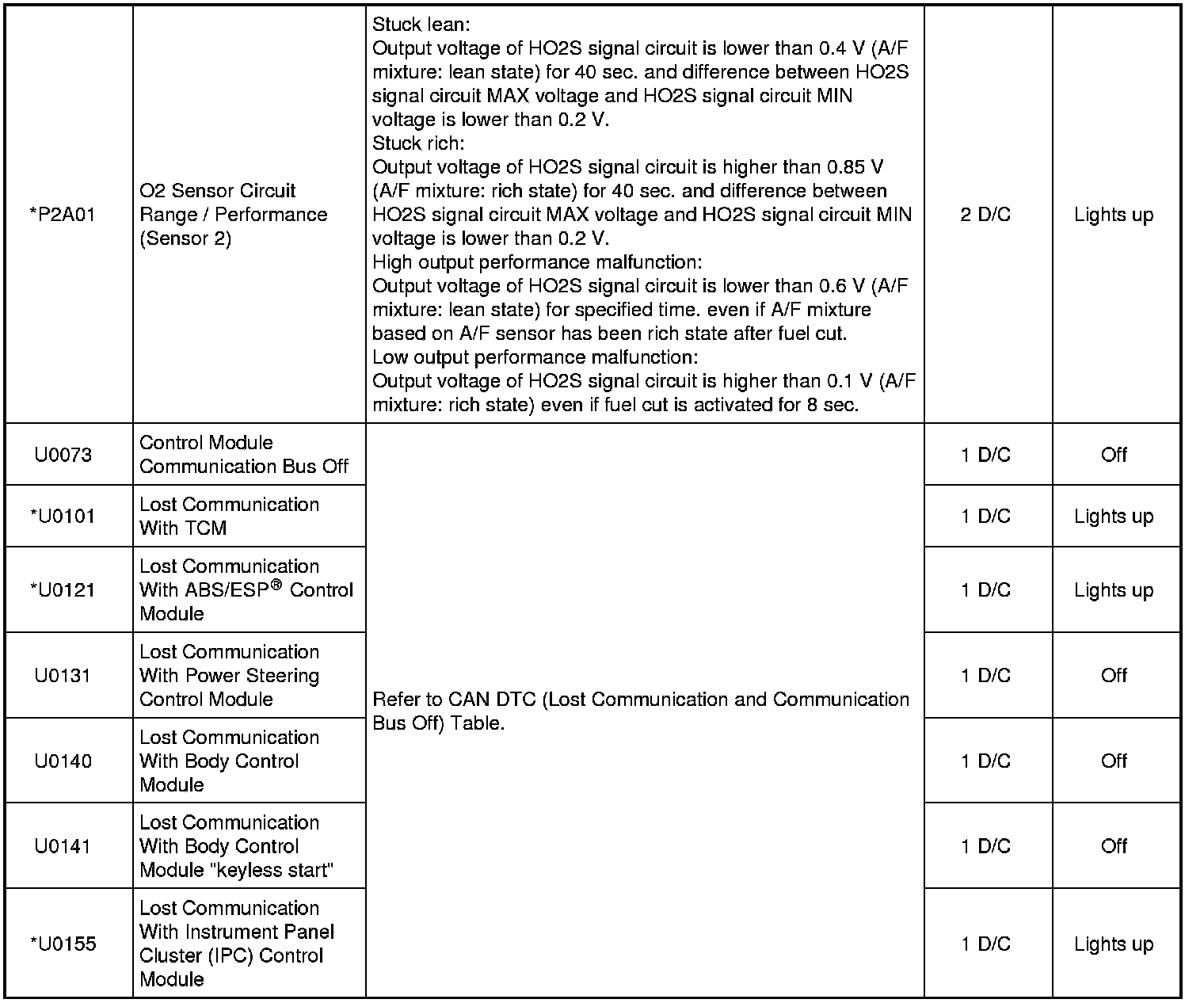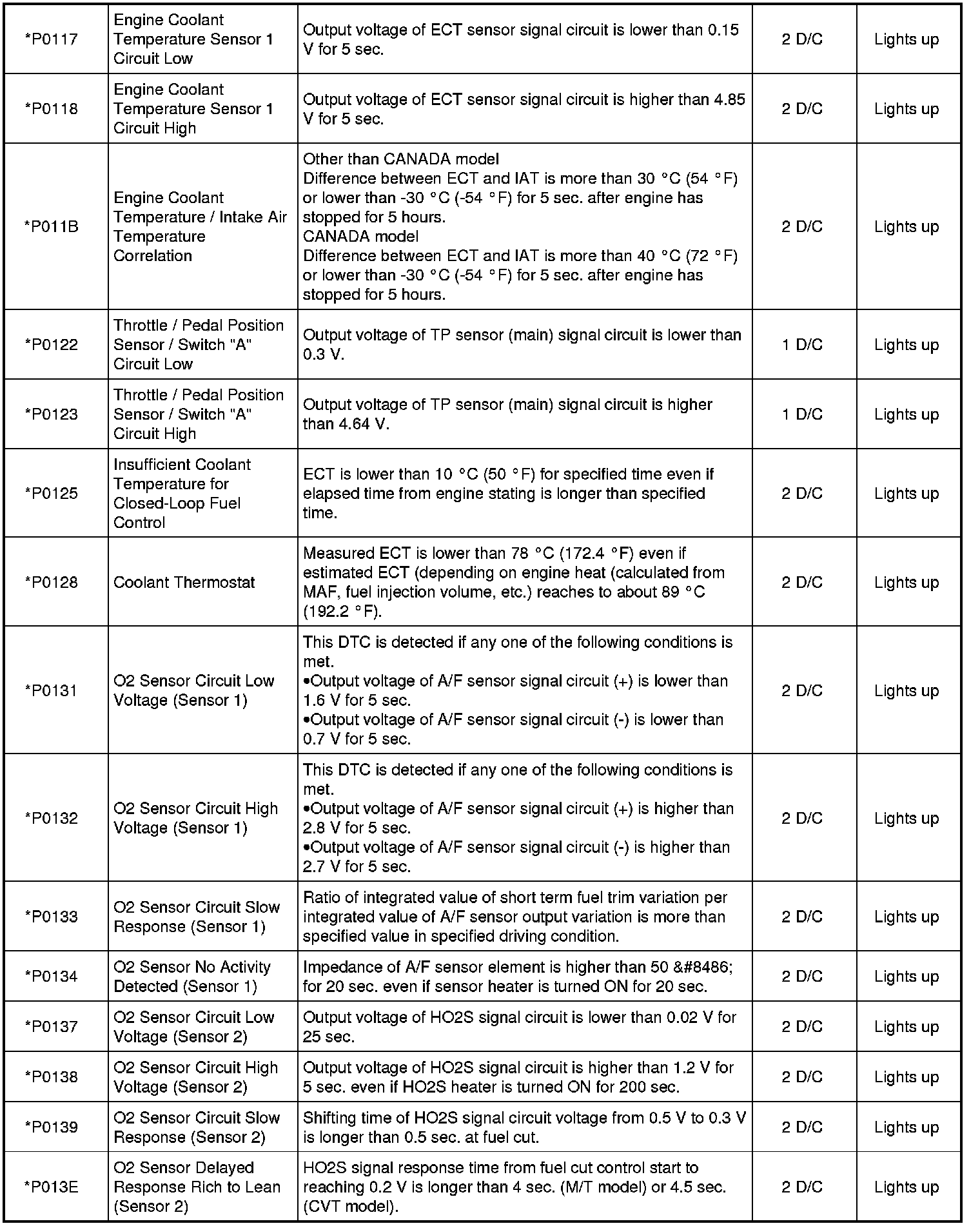 - With the CAN communication OBD-II generic scan tool, only asterisk (*) DTC No. in the following table can be read.