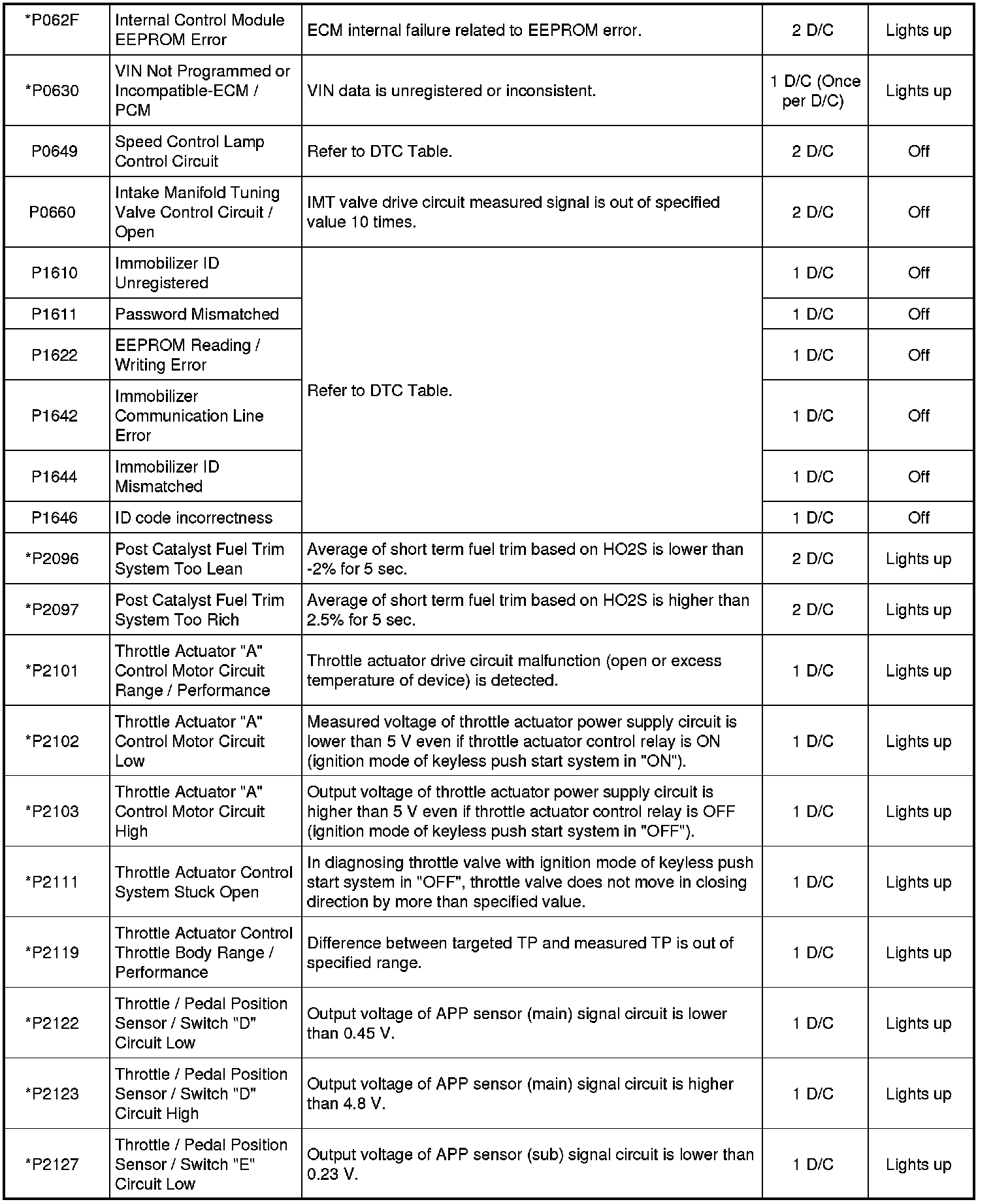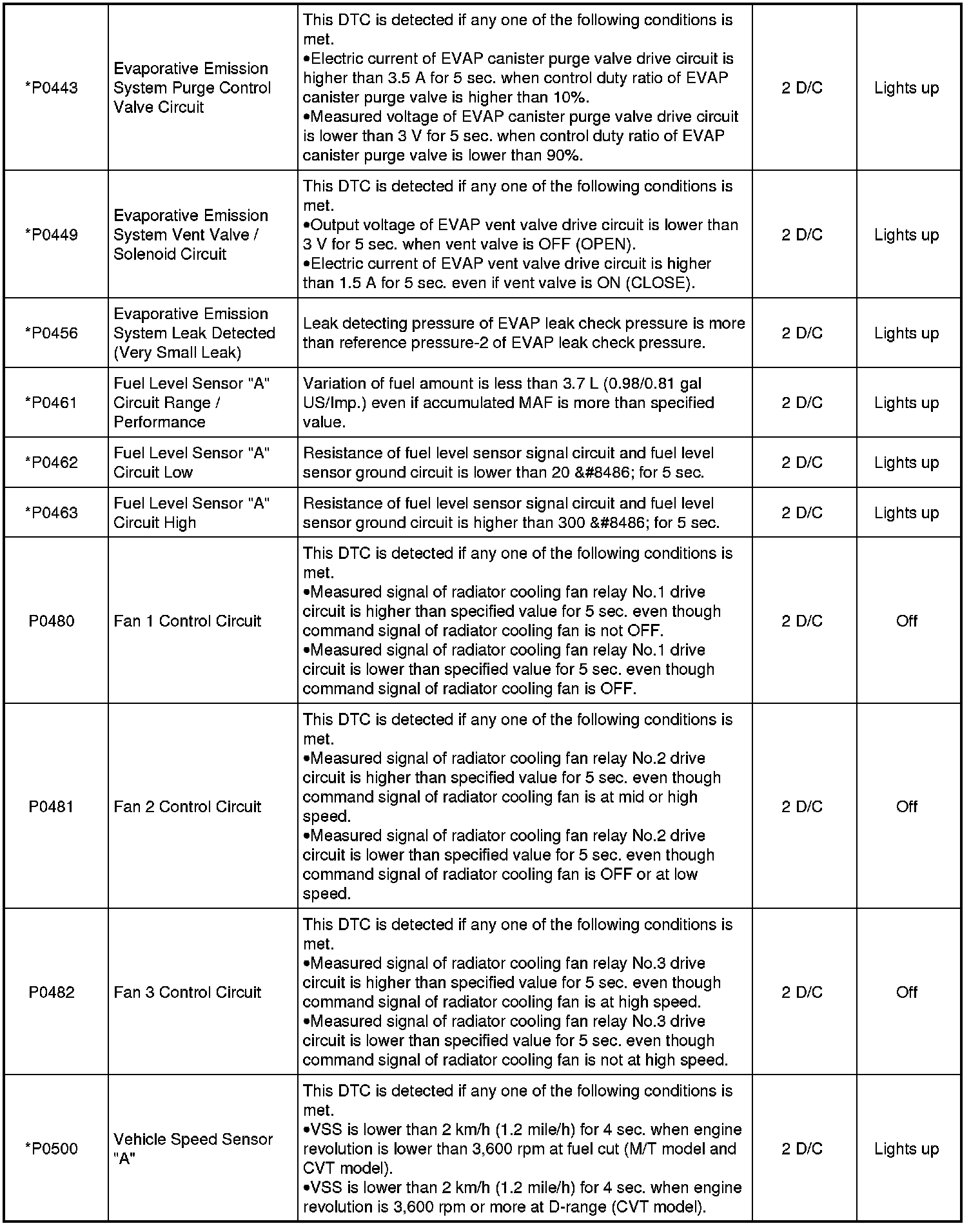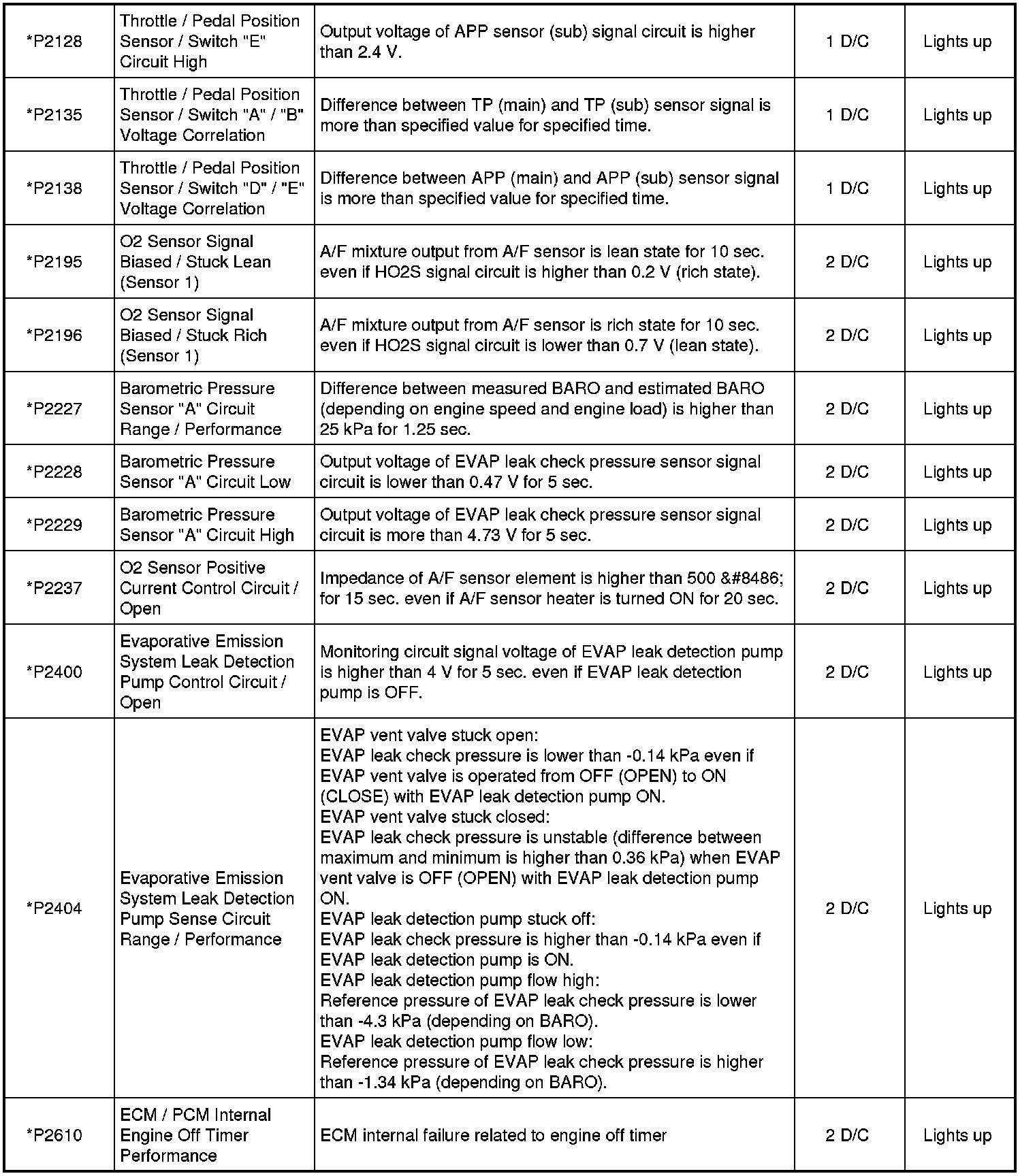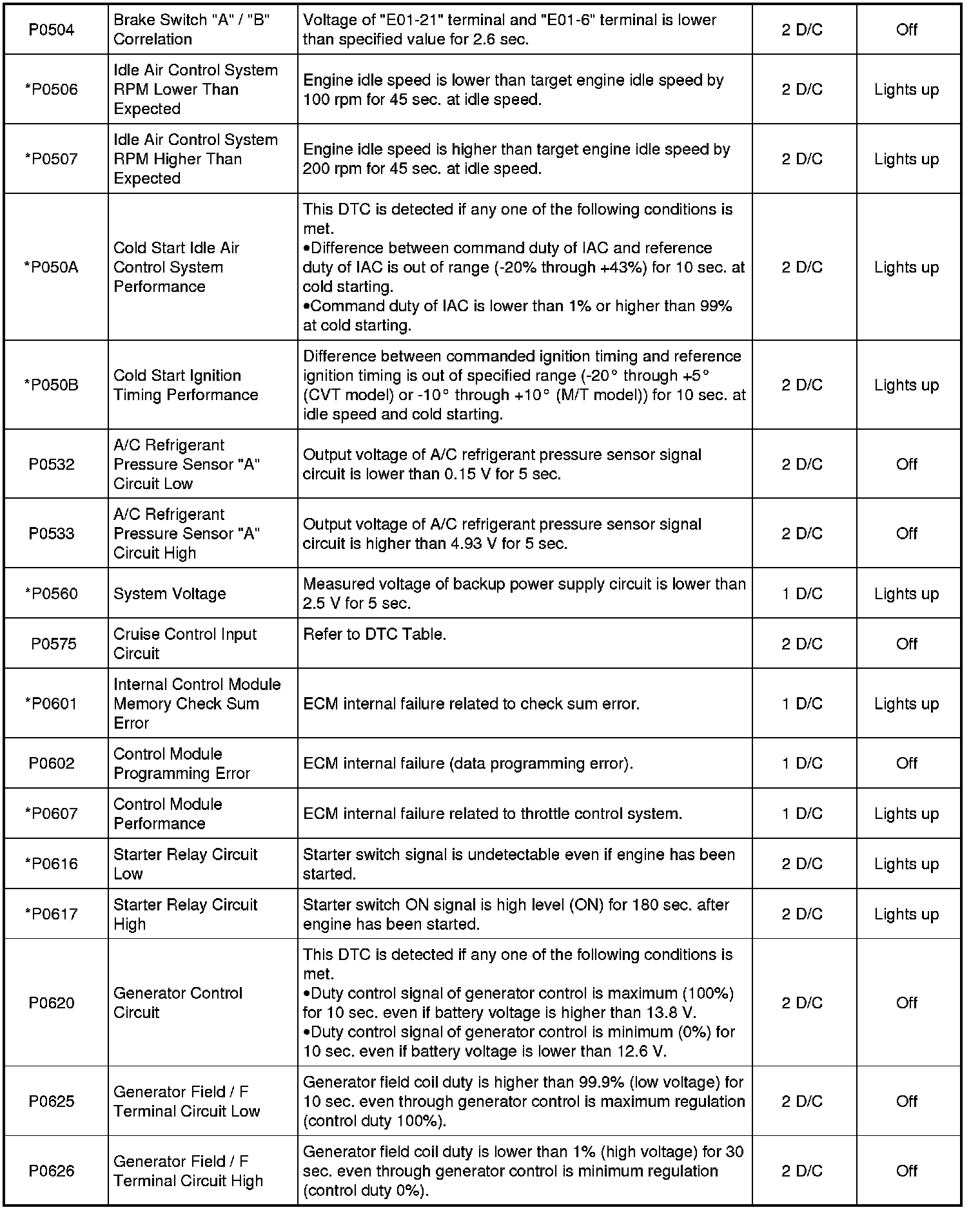 - With the CAN communication OBD-II generic scan tool, only asterisk (*) DTC No. in the following table can be read.