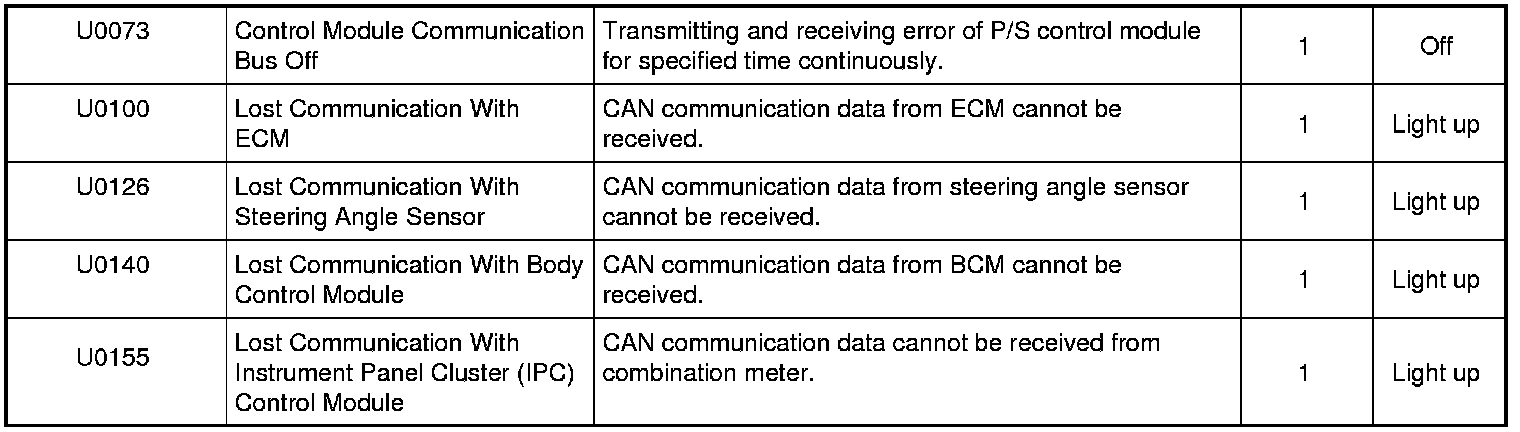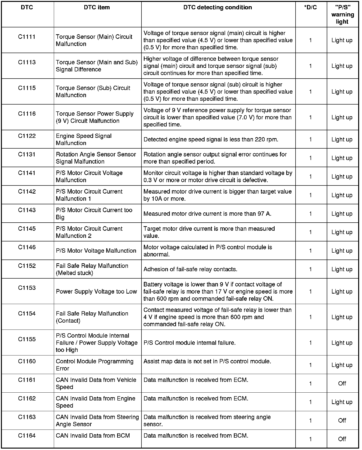 - 1 D/C: When the malfunction is detected in 1st driving cycle, "P/S" warning light is turned ON.