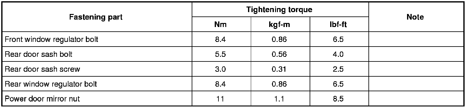 Tightening Torque Specifications