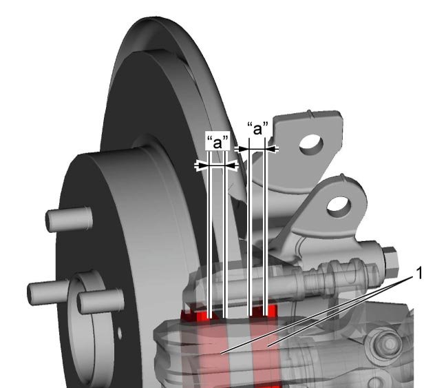 Rear brake pad thickness (lining thickness) "a"