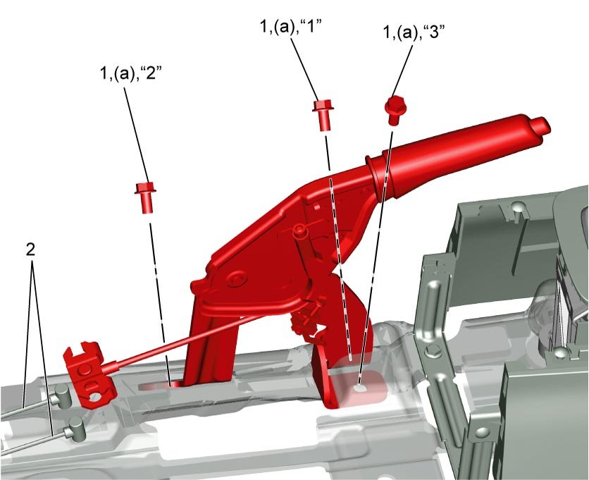 Parking brake lever bolt (a): 25 Nm (2.5 kgf-m, 18.5 lbf-ft)