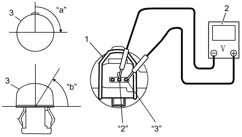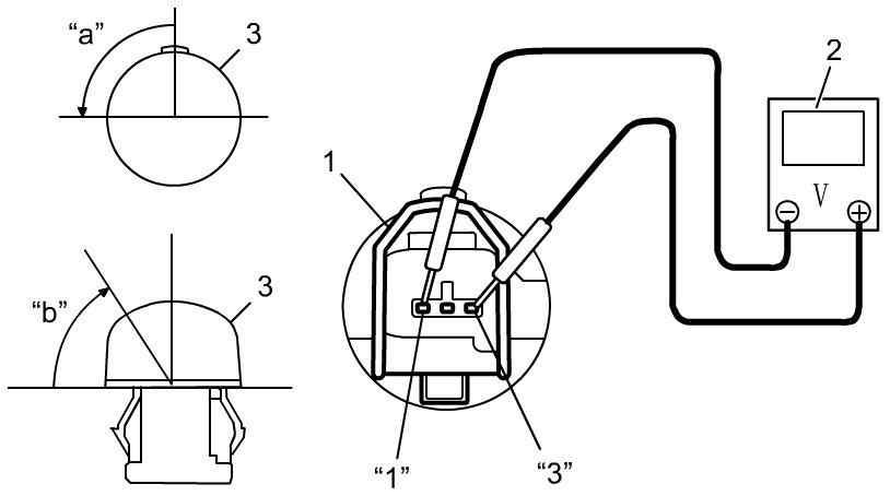 3) Measure the voltage between terminal "2" and terminal "3" of sunload sensor connector (1) by using voltmeter (2).