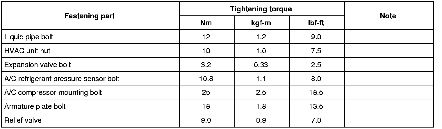 For the tightening torques of fasteners not specified in this section, refer to Fastener Information Fastener Information.