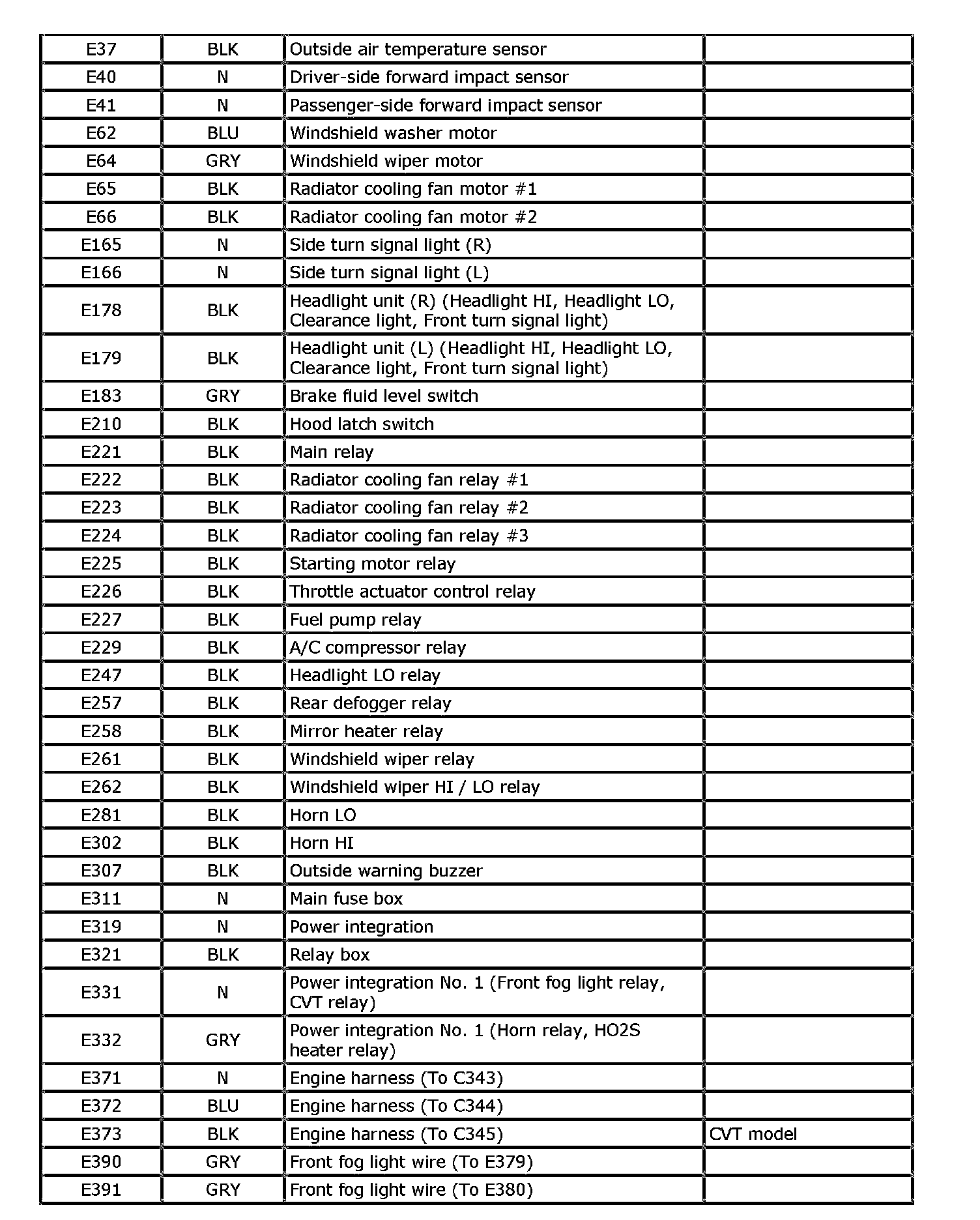 E: Fog Light (L) Wire