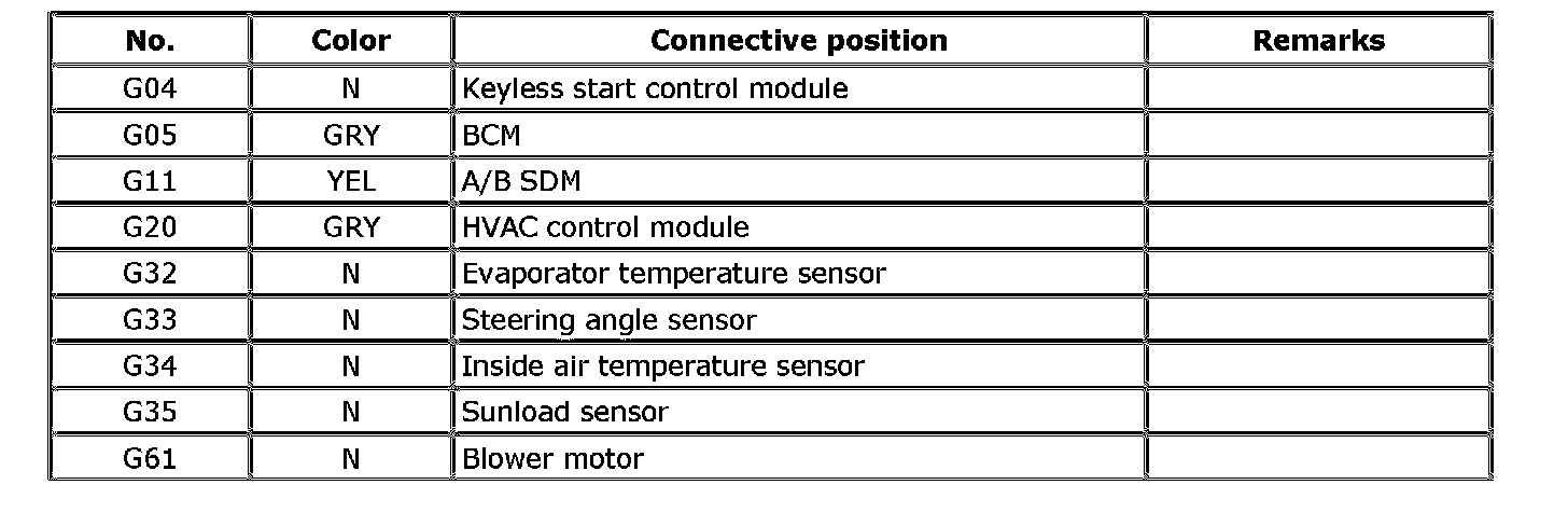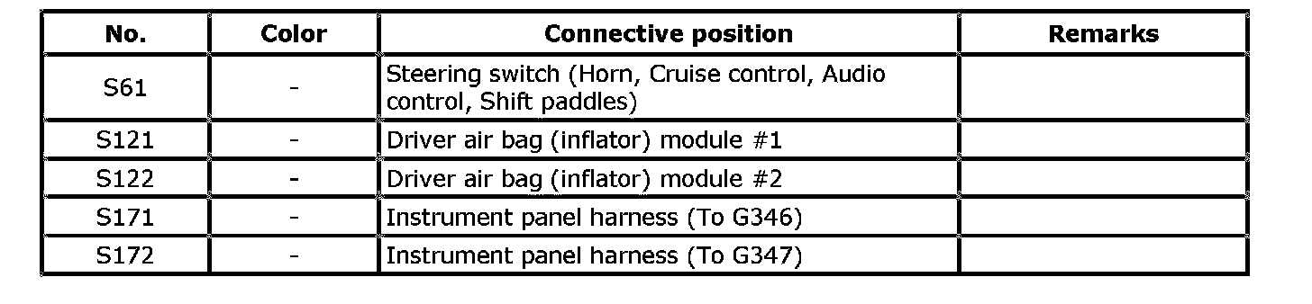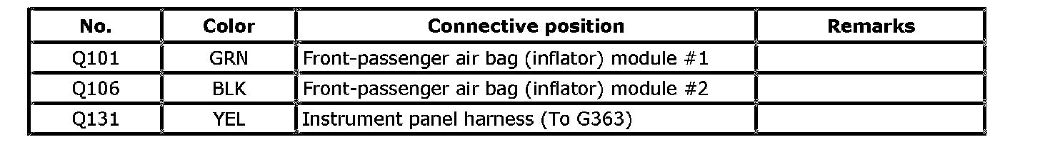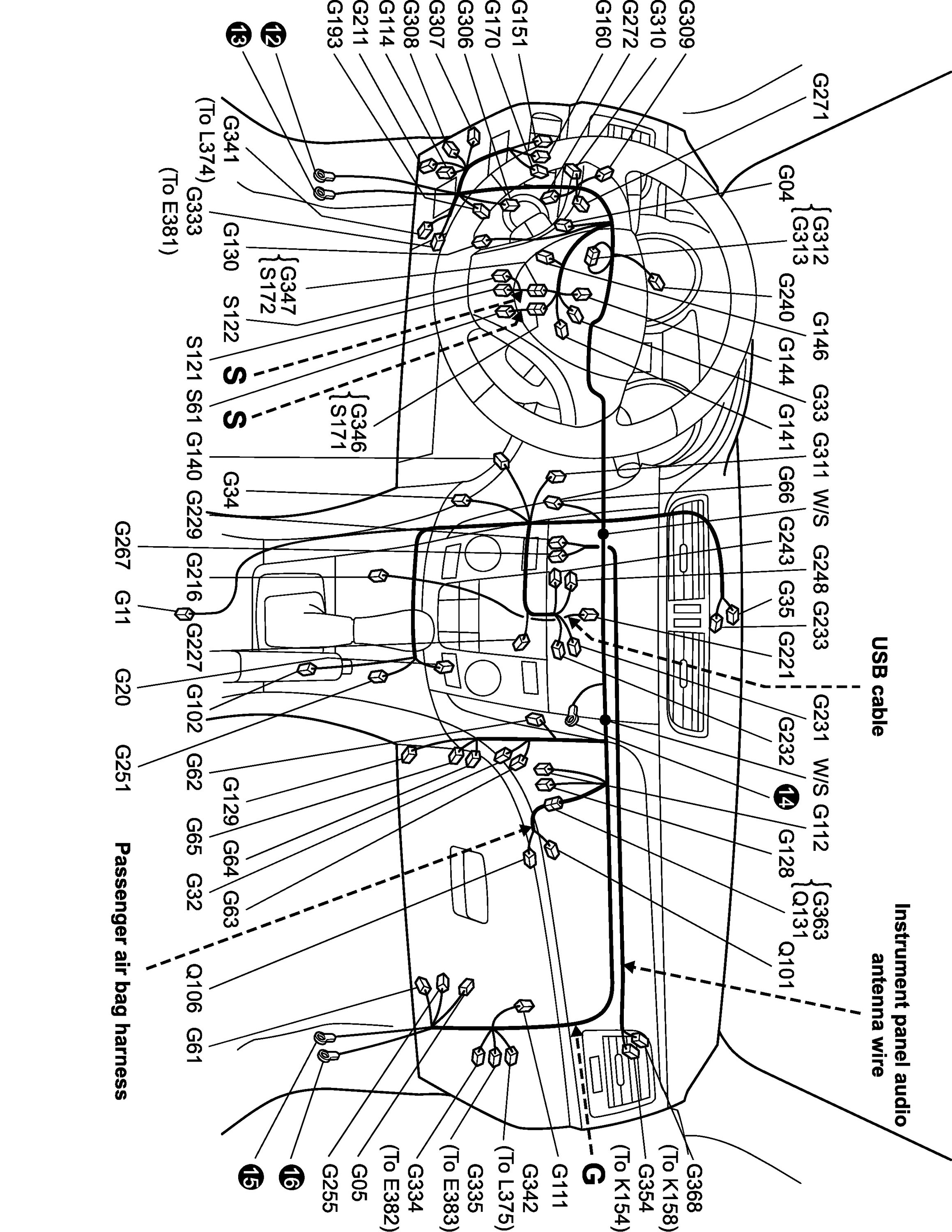G: Instrument Panel Harness, Instrument Panel Audio Antenna Wire, USB Cable / Q: Passenger Air Bag Harness / S: Contact Coil