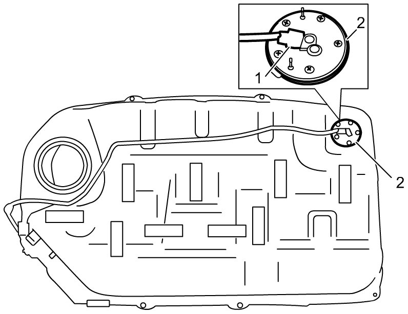 3) Remove sub fuel level sensor (2) from fuel tank.