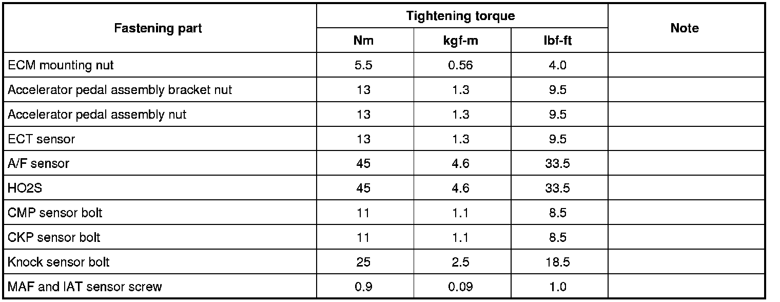 Tightening Torque Specifications