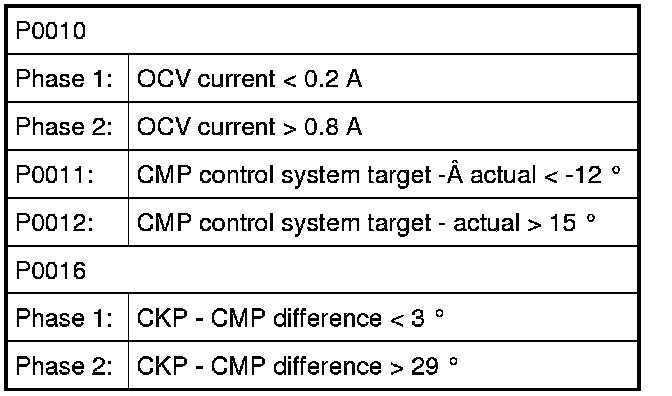 OBD System Description - Camshaft Position Control (VVT Variable Valve Timing) Monitor