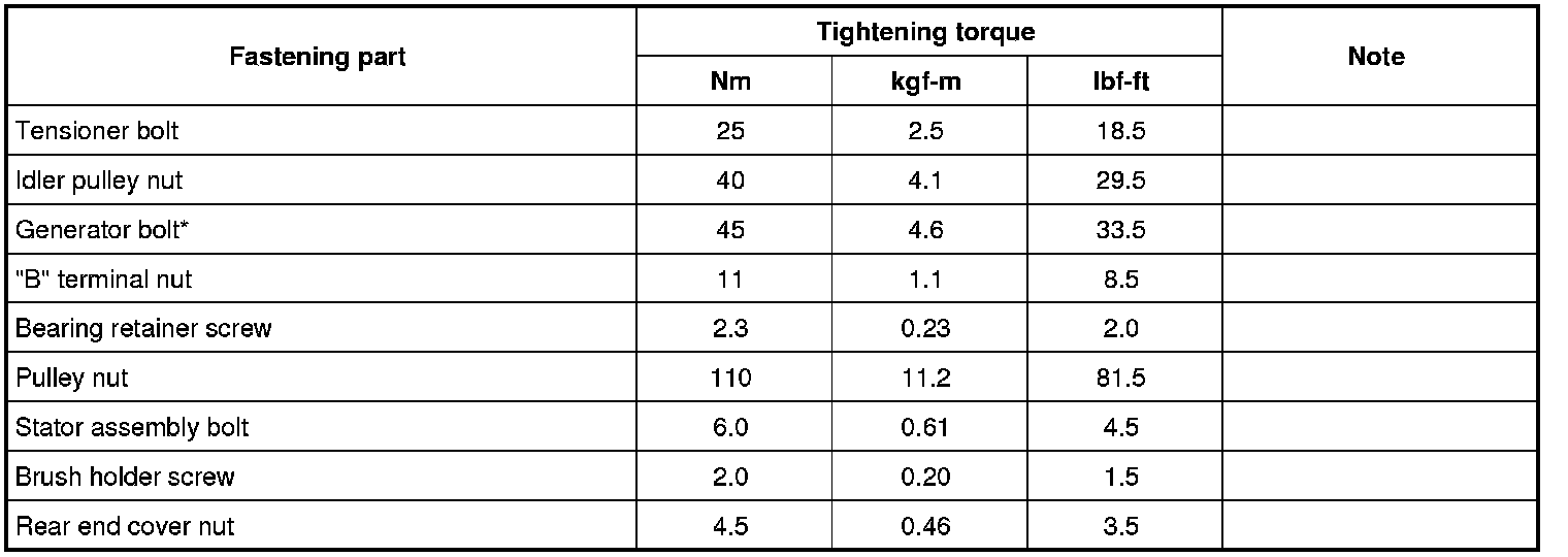 Tightening Torque Specifications