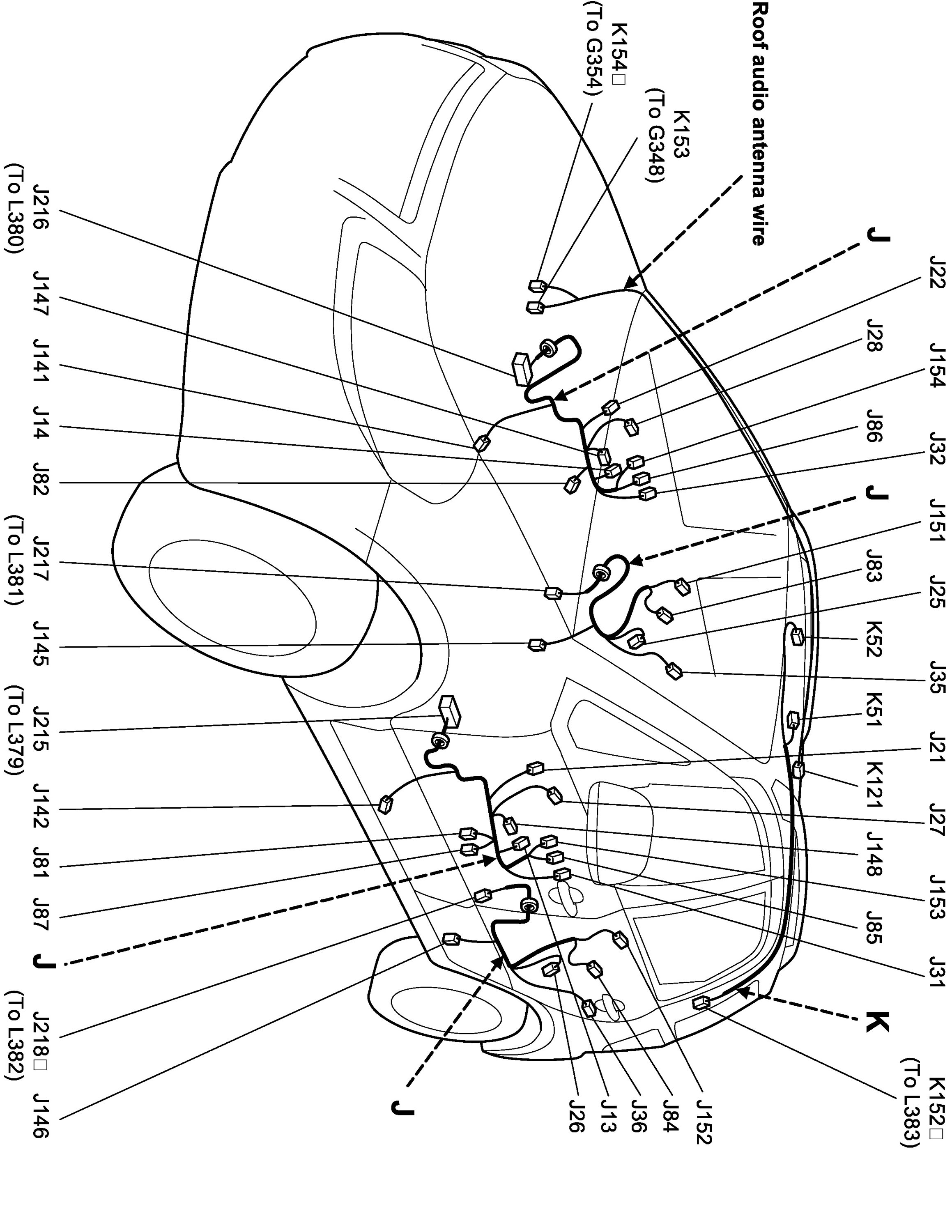 J: Front and Rear Door Wire and Rear Door Wire / K: Roof Wire, Roof Audio Antenna Wire (Hatchback)