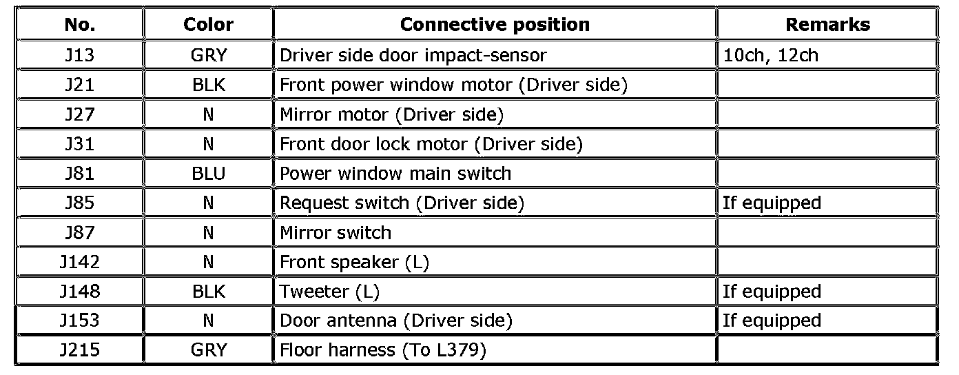 J: Door Harness (Driver Side)