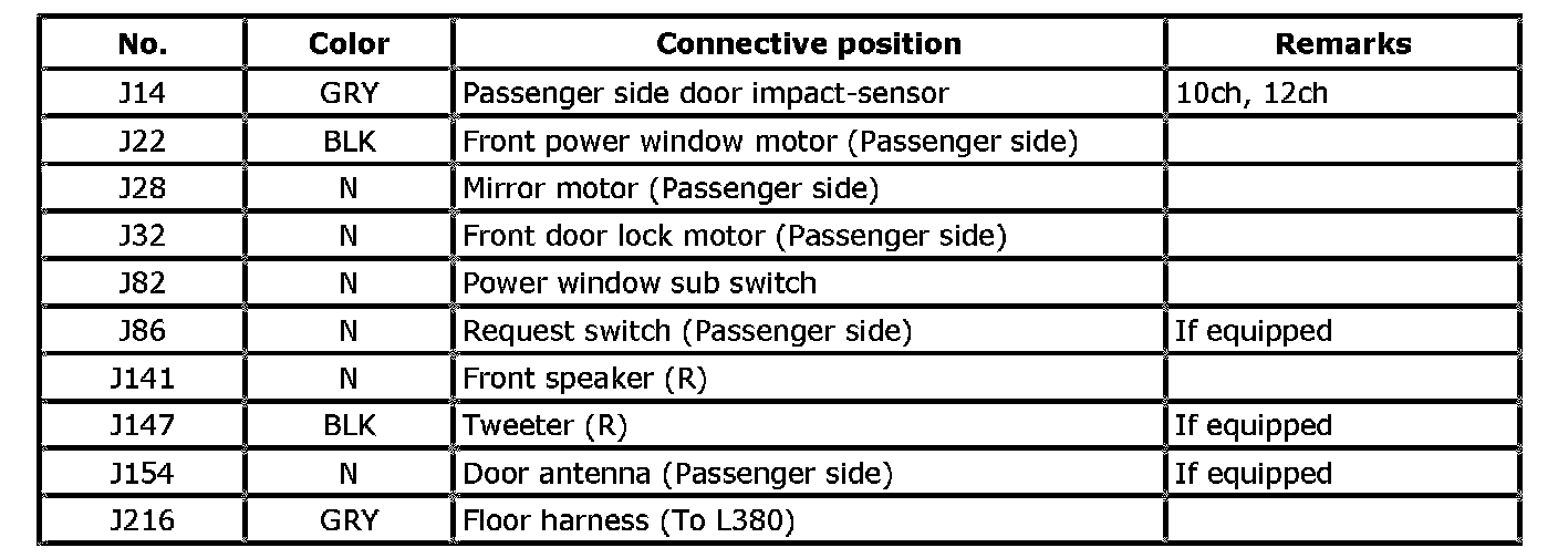 J: Door Harness (Passenger Side)