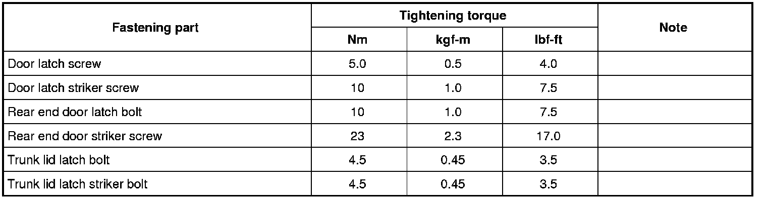 Tightening Torque Specifications
