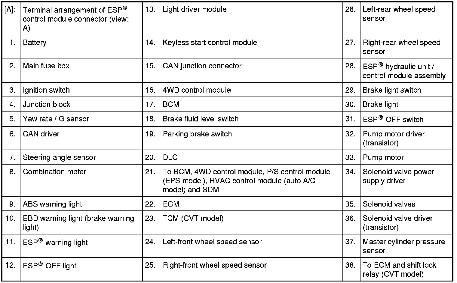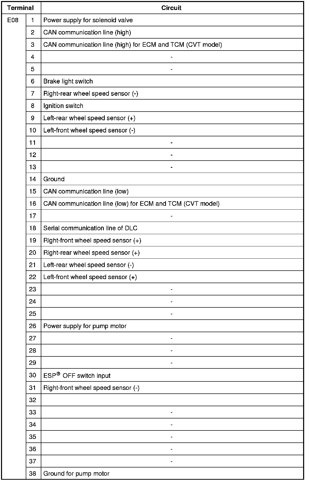 Connector "E08" (ESP(R) Control Module Connector)