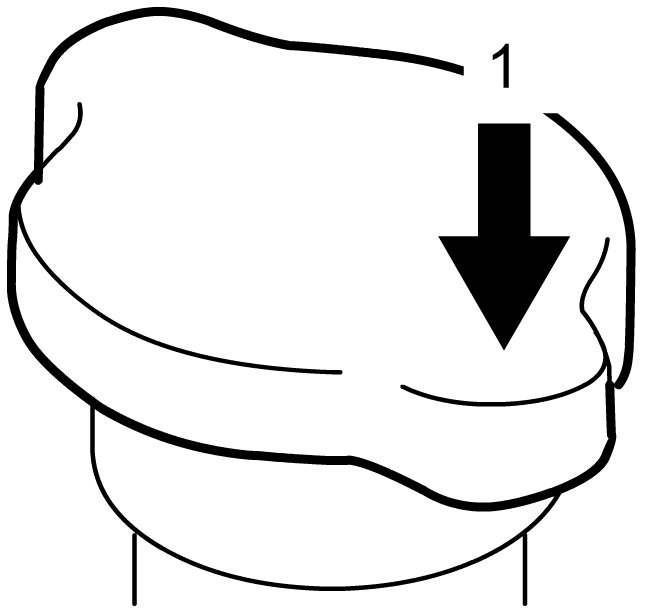 2) Push arrow-position (1) of radiator cap and wait until pressure is relieved (hissing sound is gone).