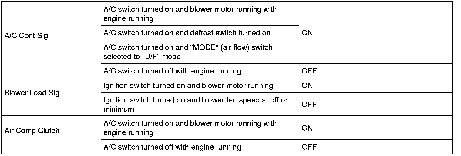 A/C Cont Sig (A/C control signal, ON, OFF)