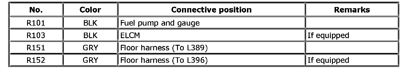 FloorL: Floor Harness, Coupling Harness, Seat Sensor (R) Wire, Seat Sensor (L) Wire / Q: Side Curtain-Air Bag Wire, Side-Air Bag (Driver Side) Harness, Side-Air Bag (Passenger Side) Harness / R: Fuel Pump Wire (Hatchback)