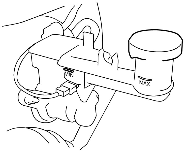 If fluid level is lower than the minimum level of reservoir, refilling is necessary. Fill reservoir with specified brake fluid.
