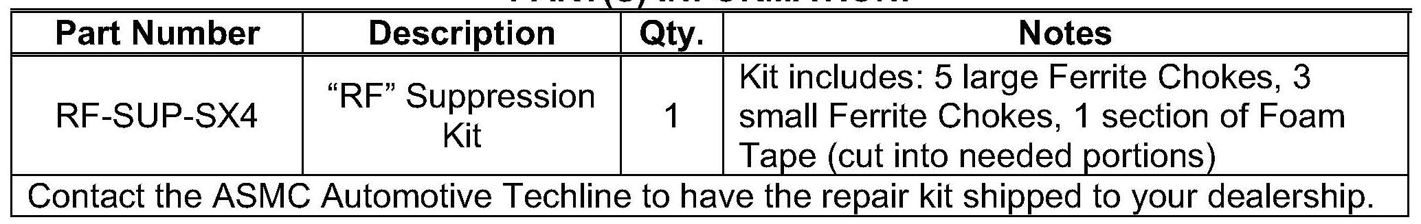 WARRANTY INFORMATION: 2012 SX-4 (RW420)