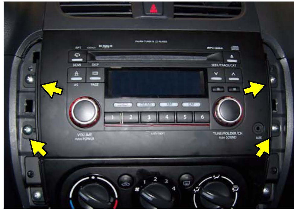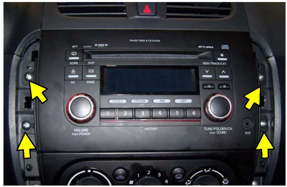 5. Remove the four (4) screws that secure the radio in the dash and carefully slide it out of the dash.