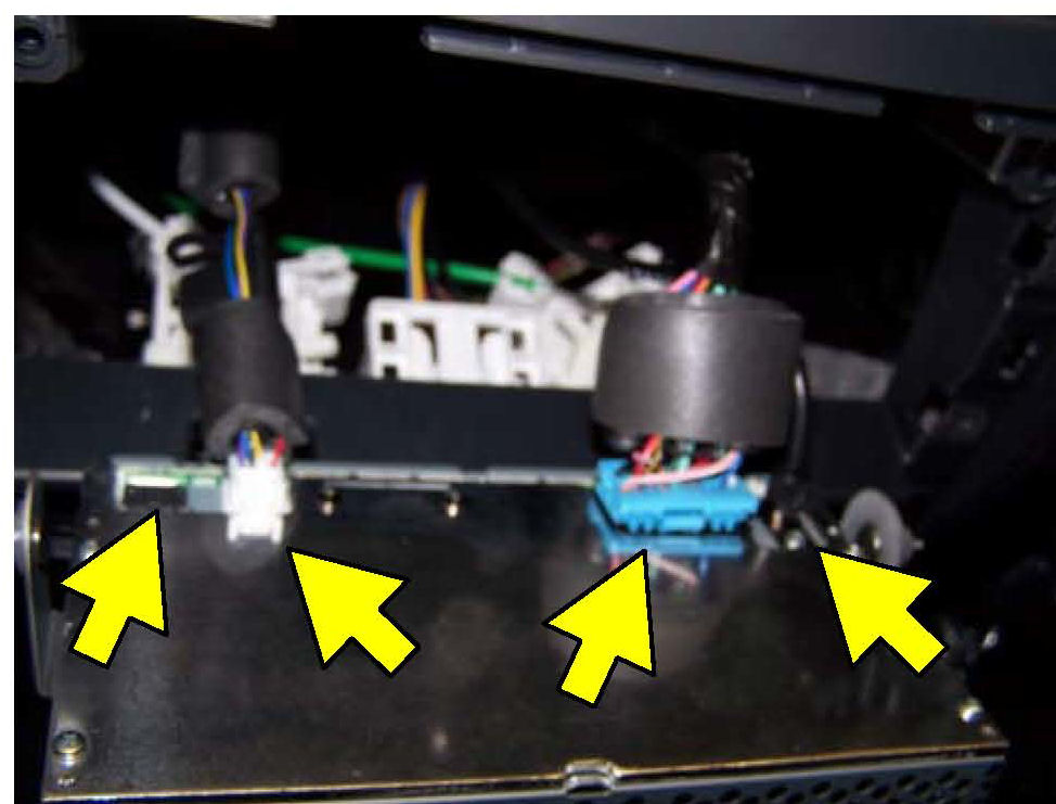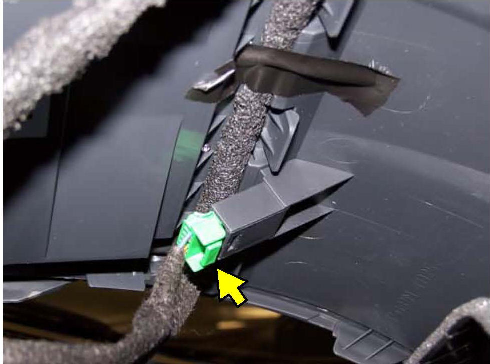 8. Raise the cradle enough to remove the hazard light switch connector and an unused connector (green) from a blank slot in the underside of the cradle assembly (pictured).