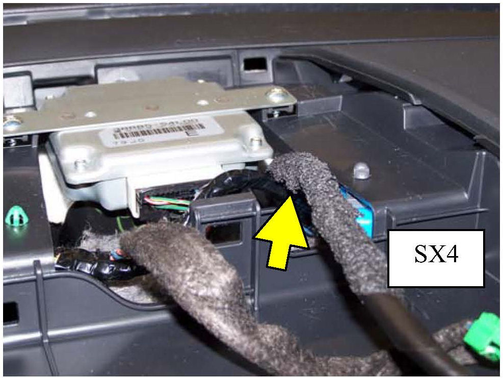 21. Connect the radio harness, NAVI harness, antenna lead, and iPOD controller (if equipped).