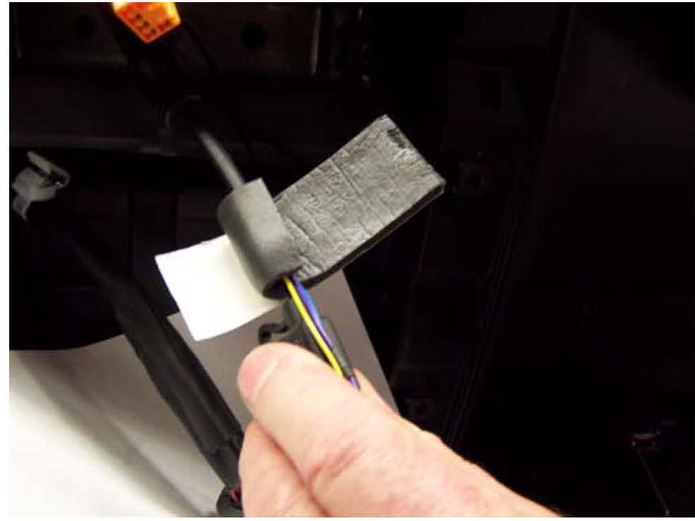 All ferrite chokes installed throughout this bulletin must be fully wrapped with foam tape. Be careful to cut the foam tape in a way to provide coverage for each choke.