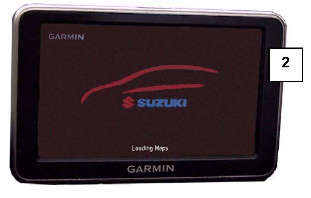 f) The unit should display the Suzuki boot screen (2) for a few moments.