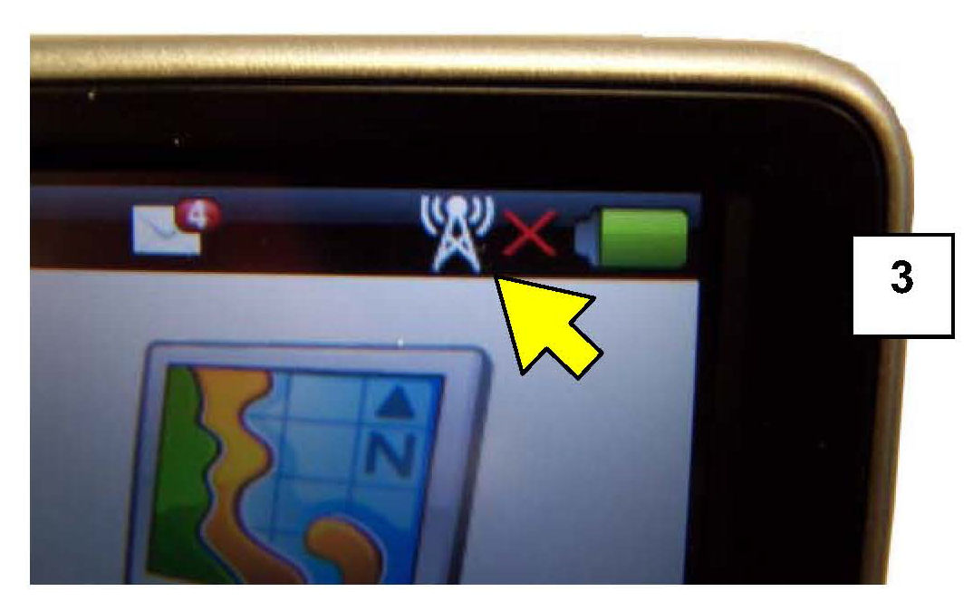 h) The main start screen will appear, observe the Cell signal strength indicator (3). While it displays an "X" to the right of the symbol some noise may be heard, and continue once communication is established.