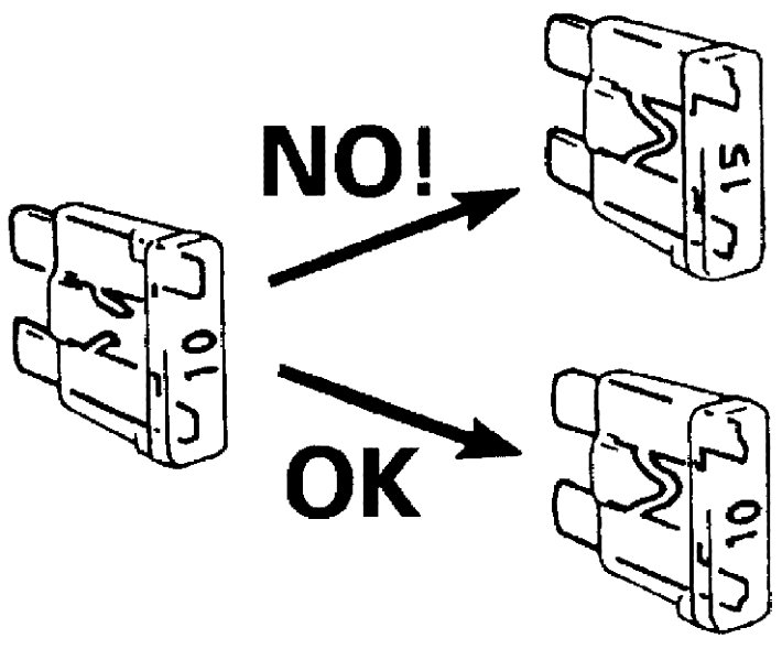 - When replacing a fuse, make sure to use a fuse of the specified capacity. Use of a fuse with a larger capacity will cause a damage to the electrical parts and a fire.
