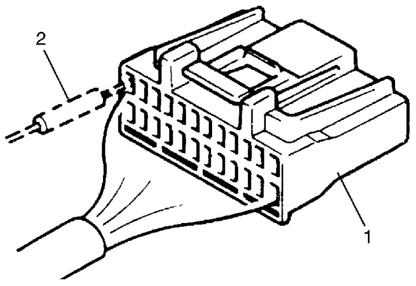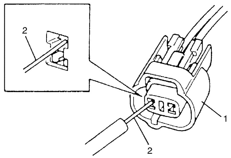 - When taking measurements at electrical connectors using a tester probe, be sure to insert the probe (2) from the wire harness side (backside) of the connector (1).