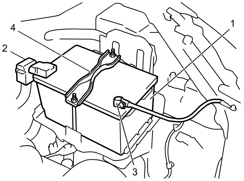 1) Disconnect negative (-) cable (3).