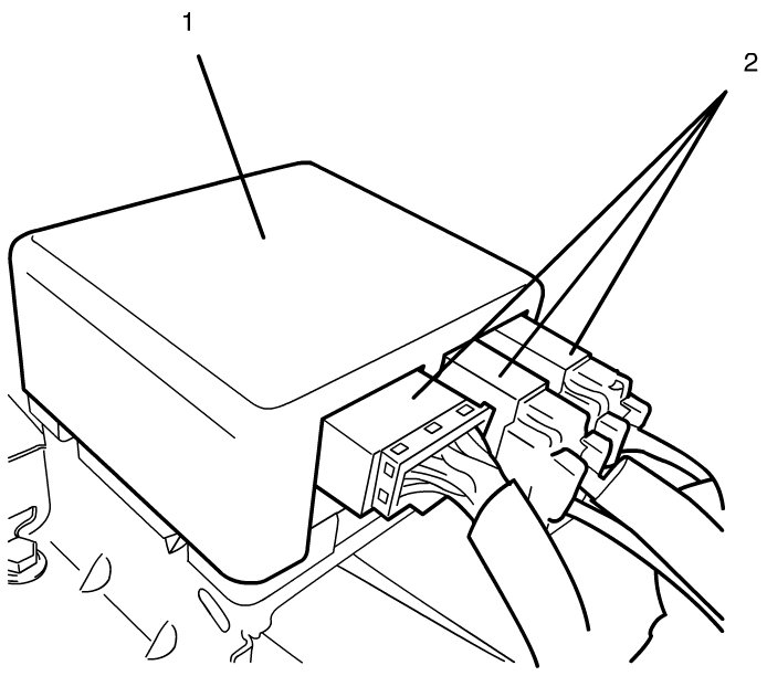 The P/S control module (1) and its circuits can be checked at the P/S control module wiring couplers (2) by measuring voltage and resistance.