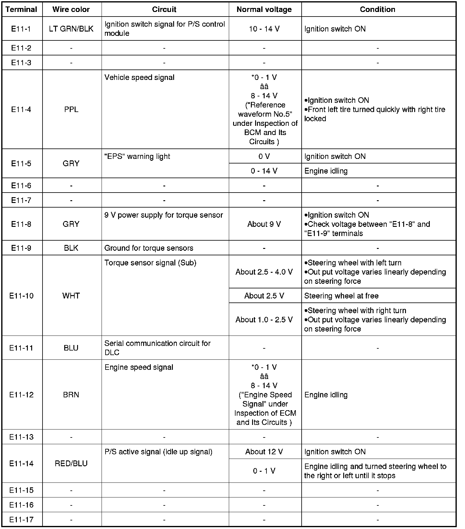 Inspection of P/S Control Module and Its Circuits