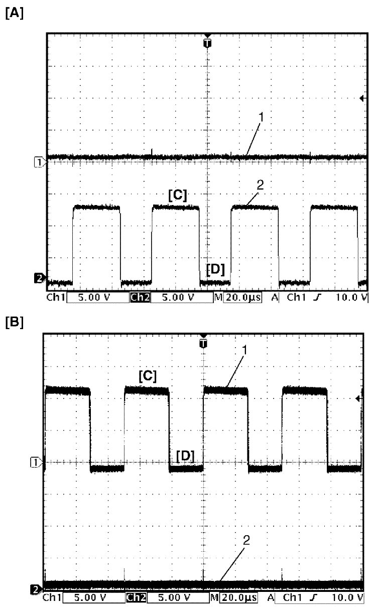 Motor output signal 1 (1), Motor output signal 2 (2), with engine idling