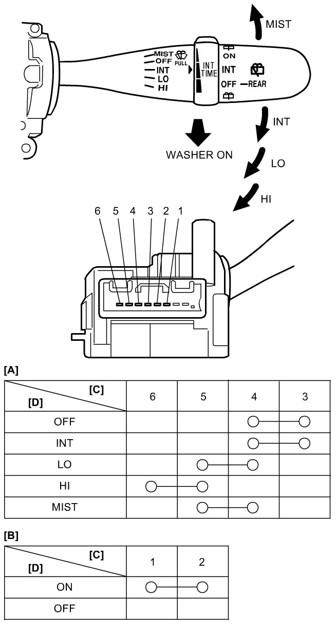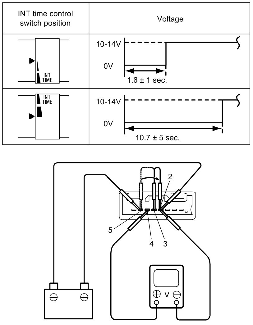 4) When front washer switch is ON, check that voltage changes as shown in figure.